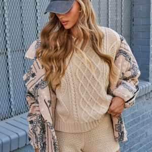 Be the first to review “Gentle Thread Cable Knit Crew Neck Sweater”